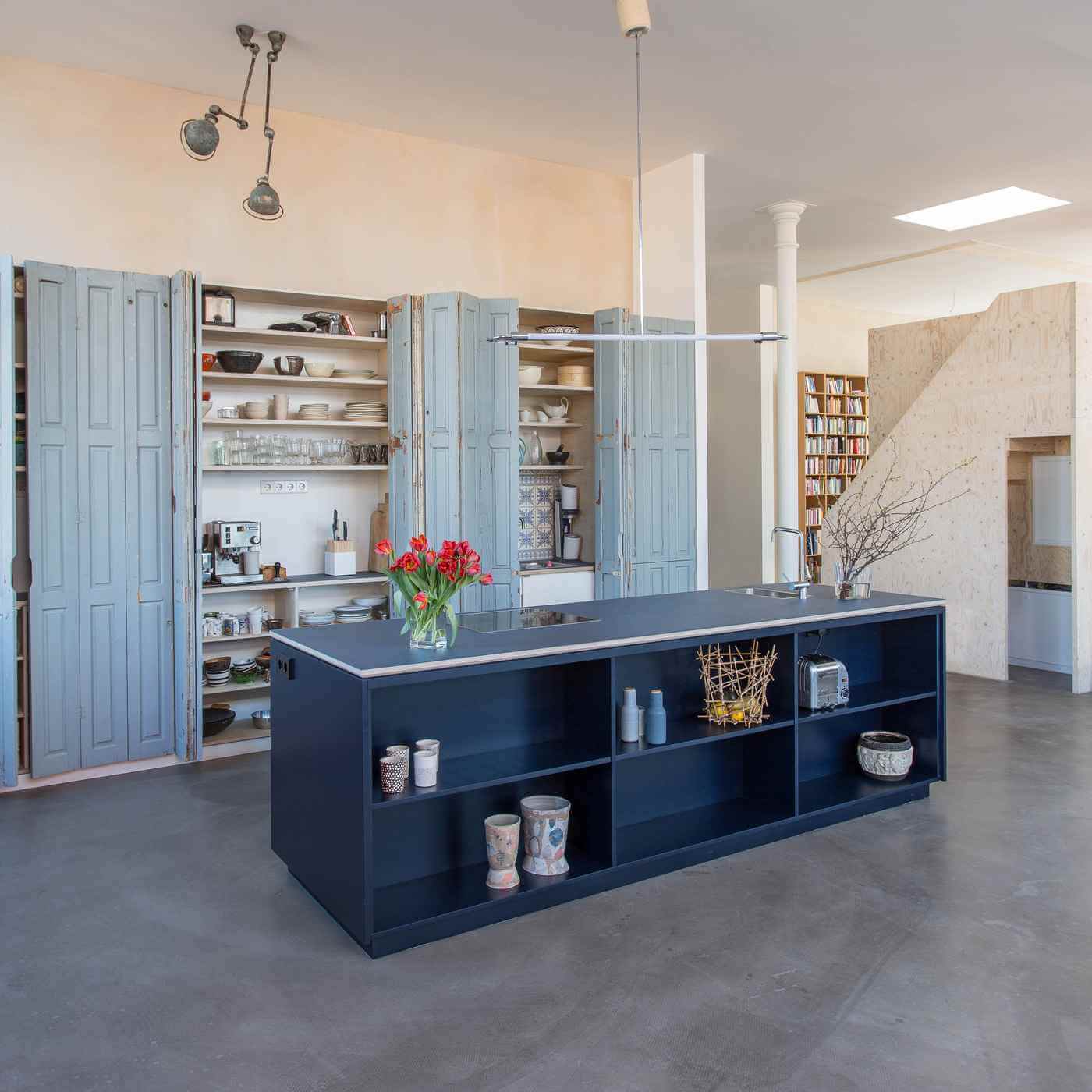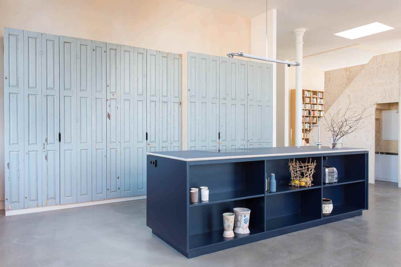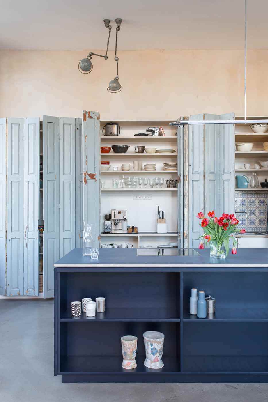 Geräumiger Küchenschrank mit alten Falttüren, die der Küche einen ganz besonderen Charme geben