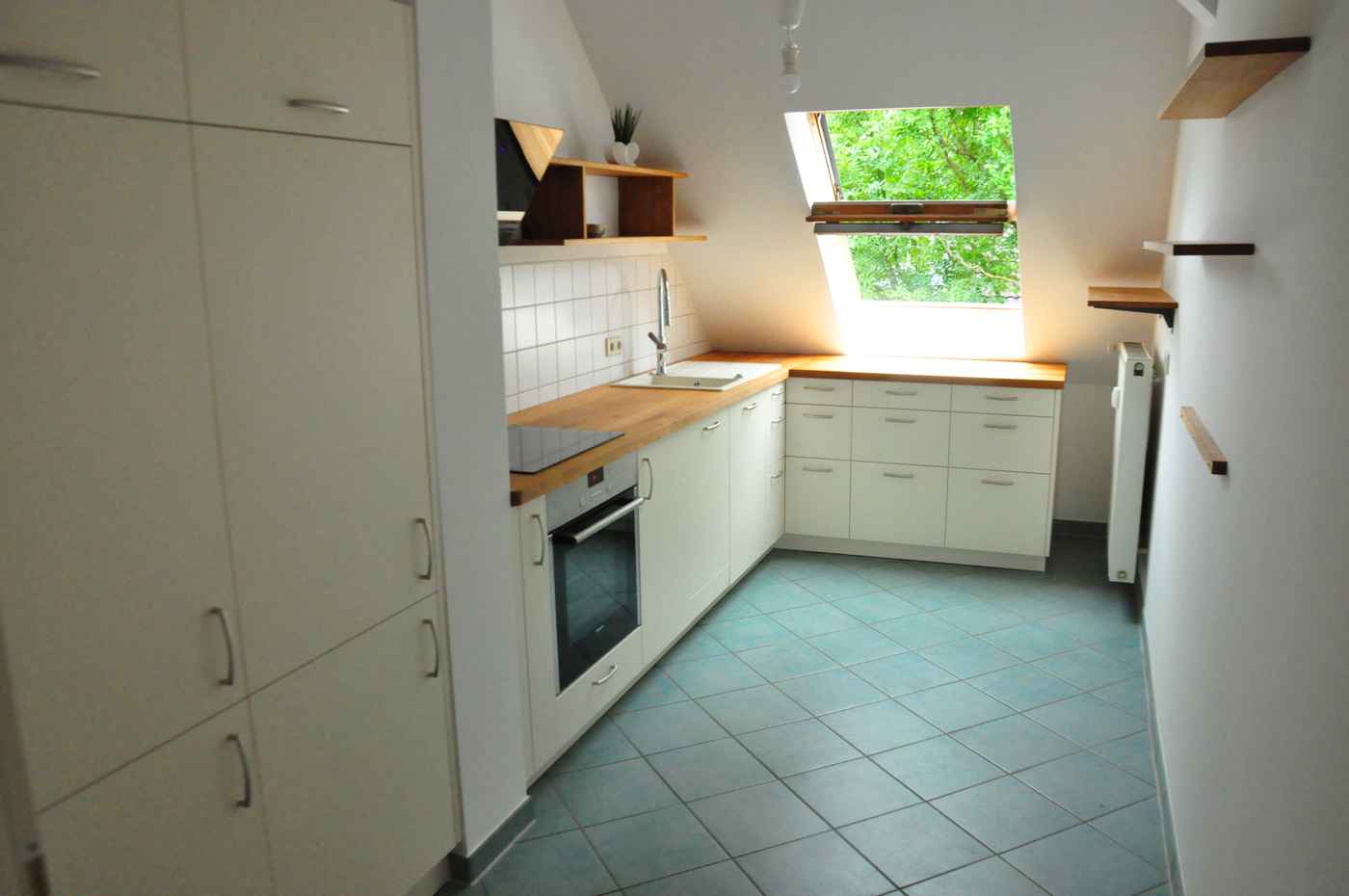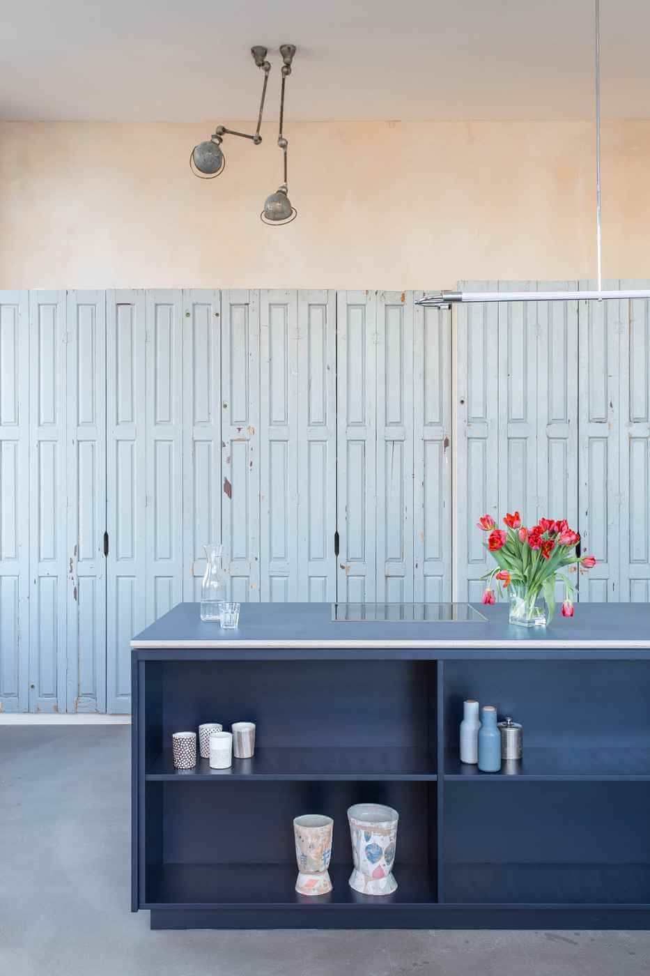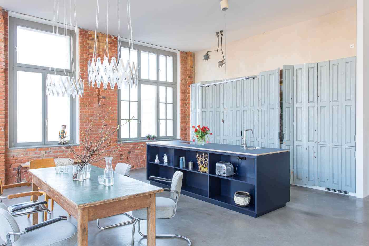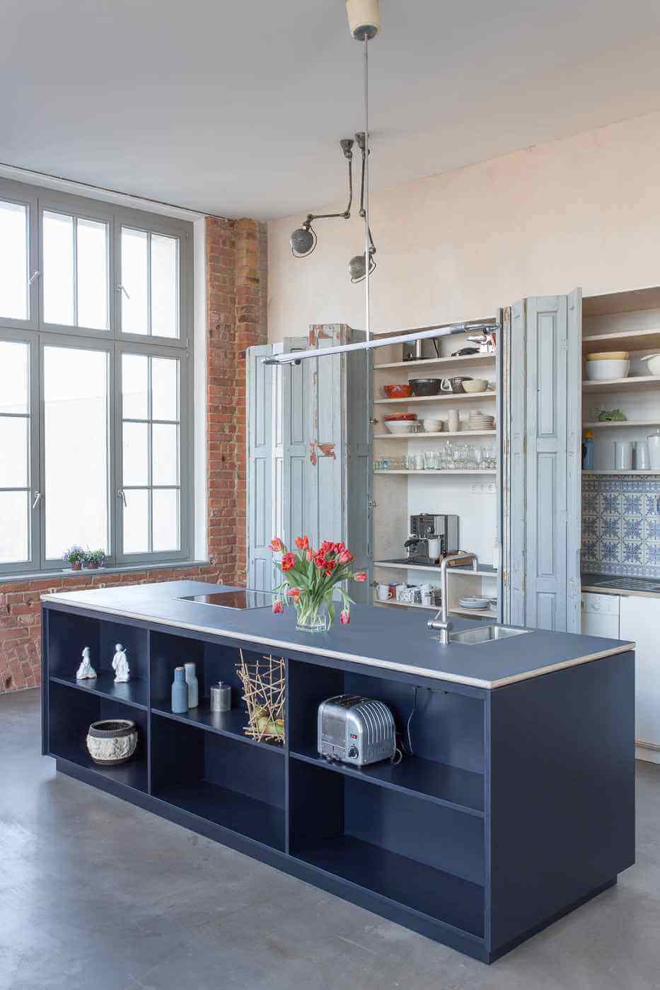 Geräumiger Küchenschrank mit alten Falttüren, die der Küche einen ganz besonderen Charme geben
